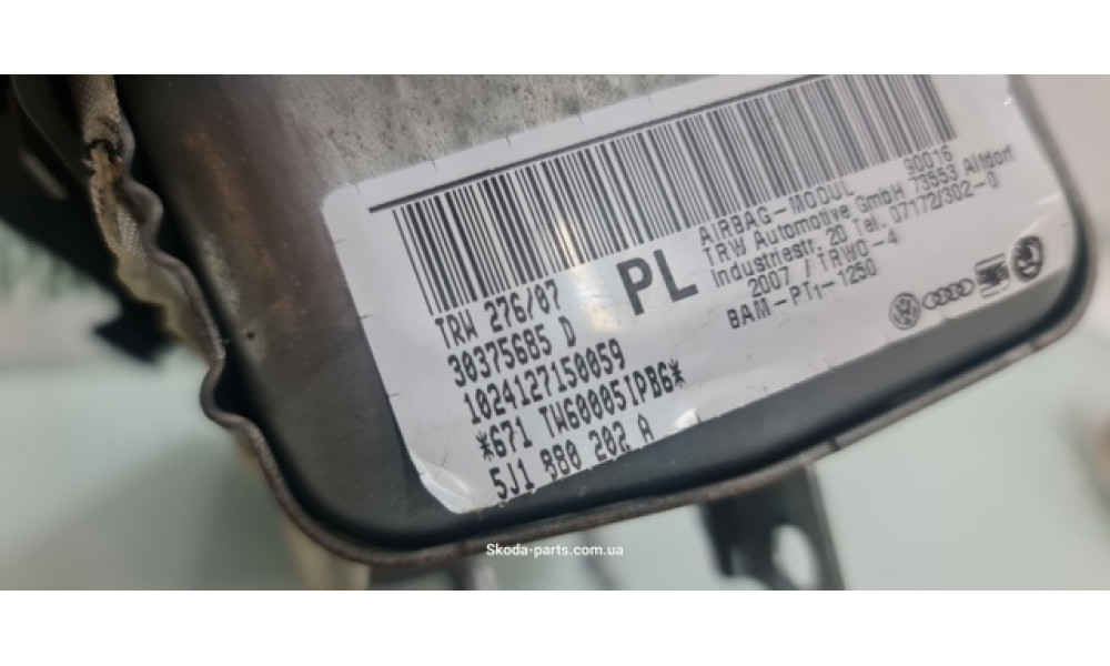 Теги: Подушка, безпеки, пасажира, Skoda, Roomster, 5J1880202A, VAG, (5J1880202A)