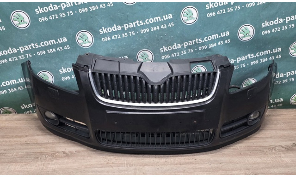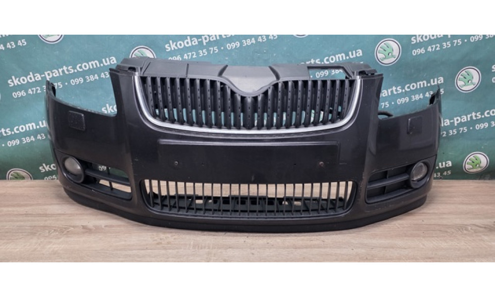 Бампер передній комплектний чорний колір 1z1z/9910 Skoda Fabia II до рестайл VAG (5J0807221T)
